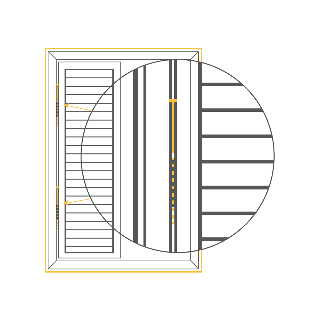 Using a metal tape measure, check that the rubber beading is less than 6mm wide from the frame edge to the glazing edge. If it exceeds 6mm, Perfect Fit blinds won’t be suitable.