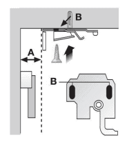 For top fixing, begin by measuring the distance that any handles protrude from the frame, labeled as A. Mark this measurement on the lintel, and use it as a guide to position the back of the bracket. Then, mark the positions of holes labeled as B, and securely attach the bracket to the lintel using the provided screws and rawl plugs.