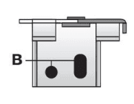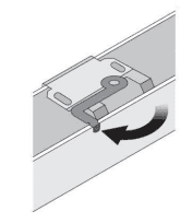 Rotate the swing arm counterclockwise as far as it will go. Then, clip the blind over the bracket by first gently easing the front lip of the headrail (labeled as A) into place.