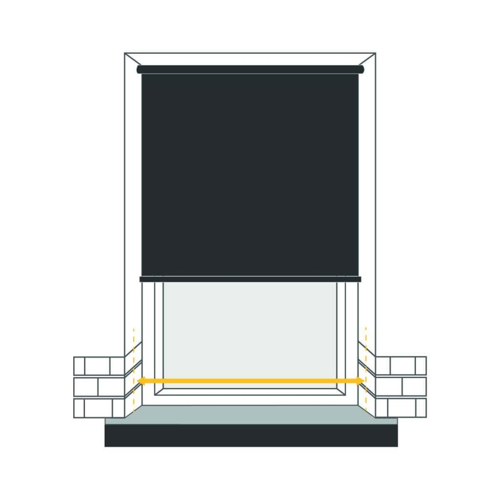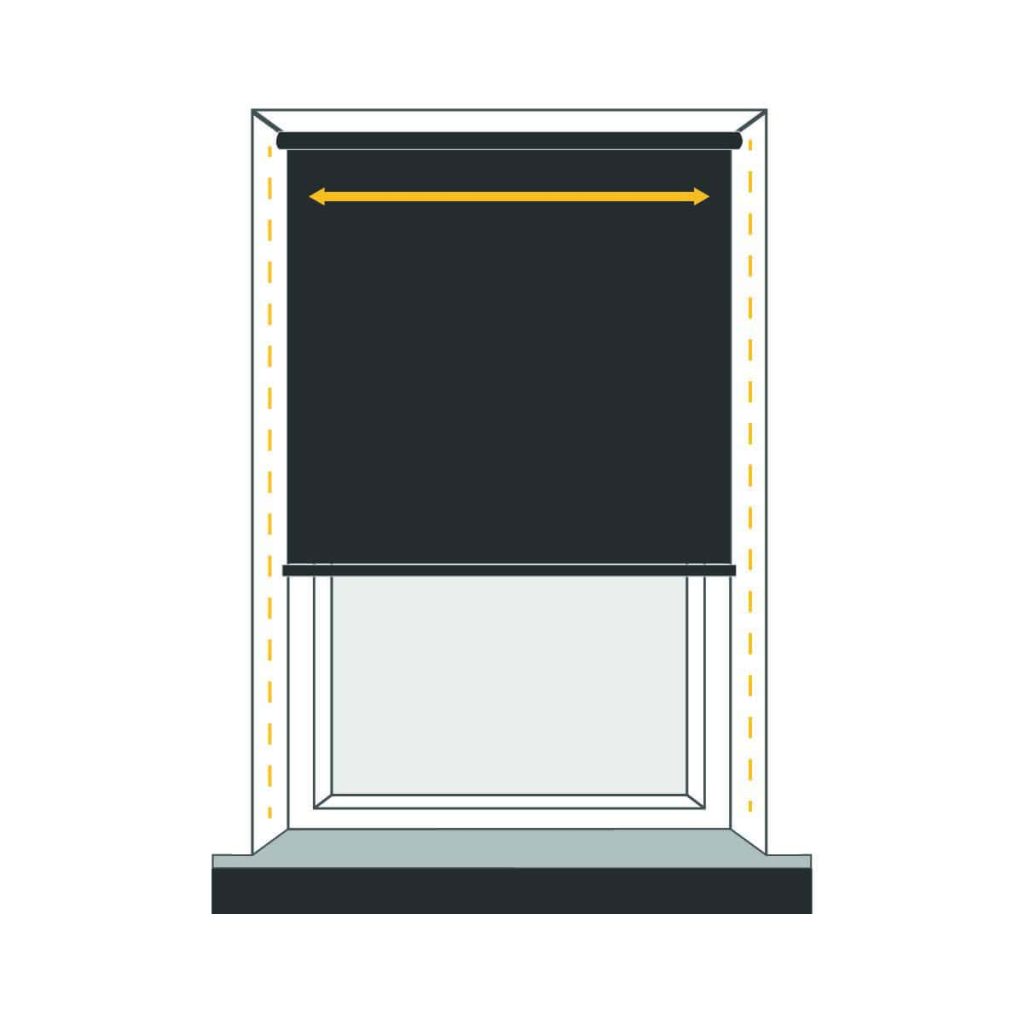 Determine the desired amount of overlap for your blind on both sides of the window recess, and measure this width accordingly. Keep in mind that due to the chain control and brackets, the fabric will be 35mm narrower than the specified size.