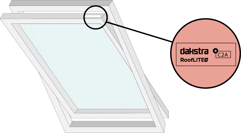 When opening your Fakro window, check for a metal, plastic, or sticker plate on the upper side of the frame.