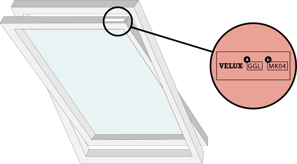 As you open your Velux window, you’ll notice a metal, plastic, or sticker plate on the upper side of the frame.