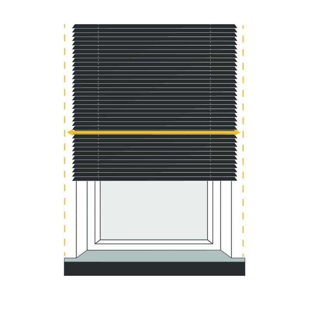 Determine the desired amount of overlap for your blind on both sides of the window recess, and measure this width accordingly. Keep in mind that due to the chain control and brackets, the fabric will be 35mm narrower than the specified size.