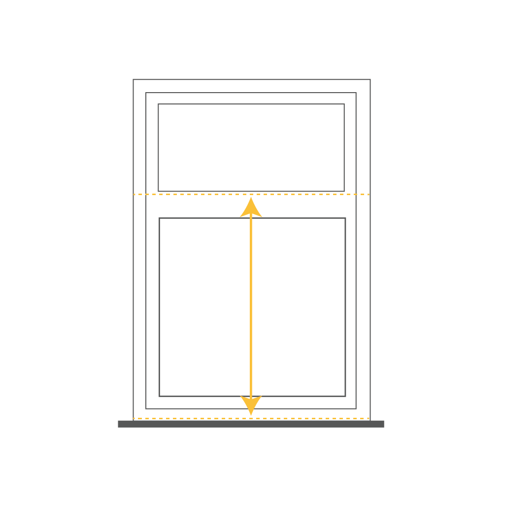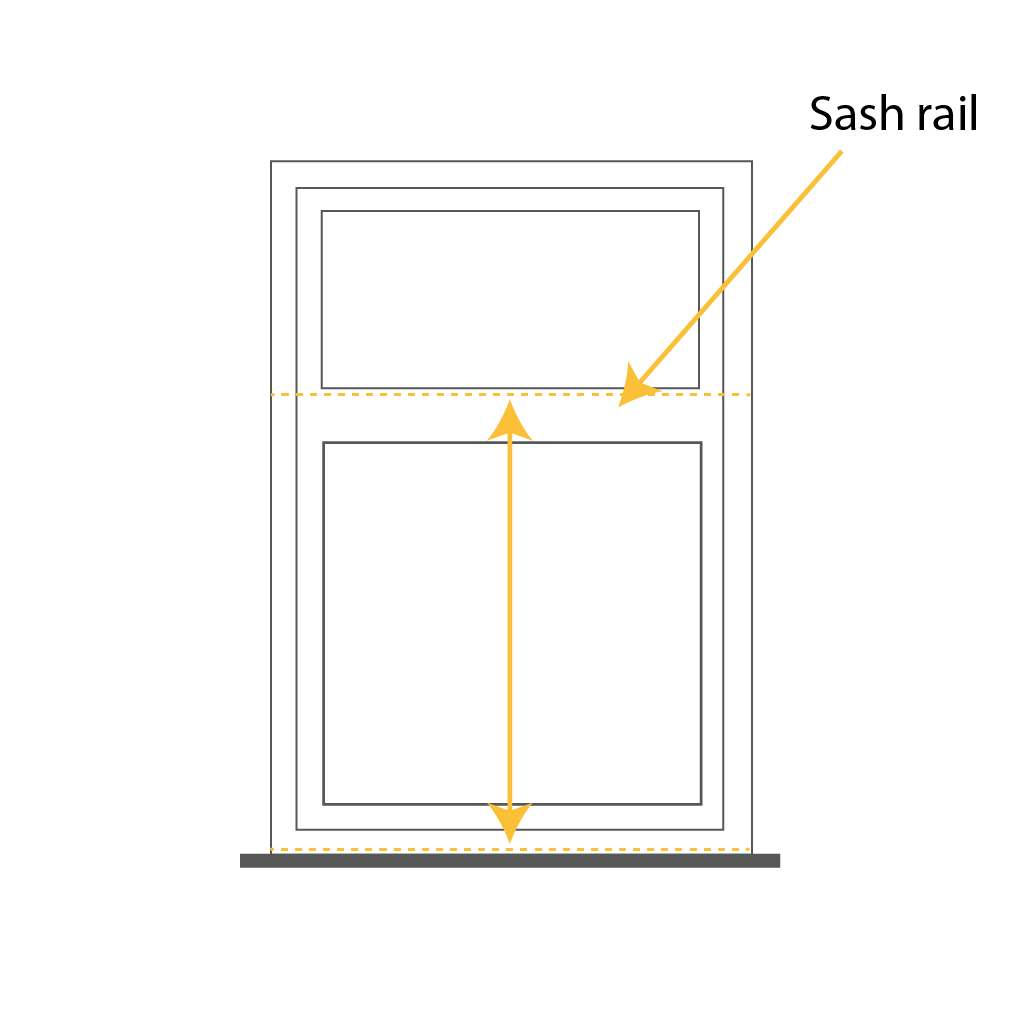 Measure from the bottom of the opening to the center or, for sash windows, to the break point. Then, deduct 2.5mm.